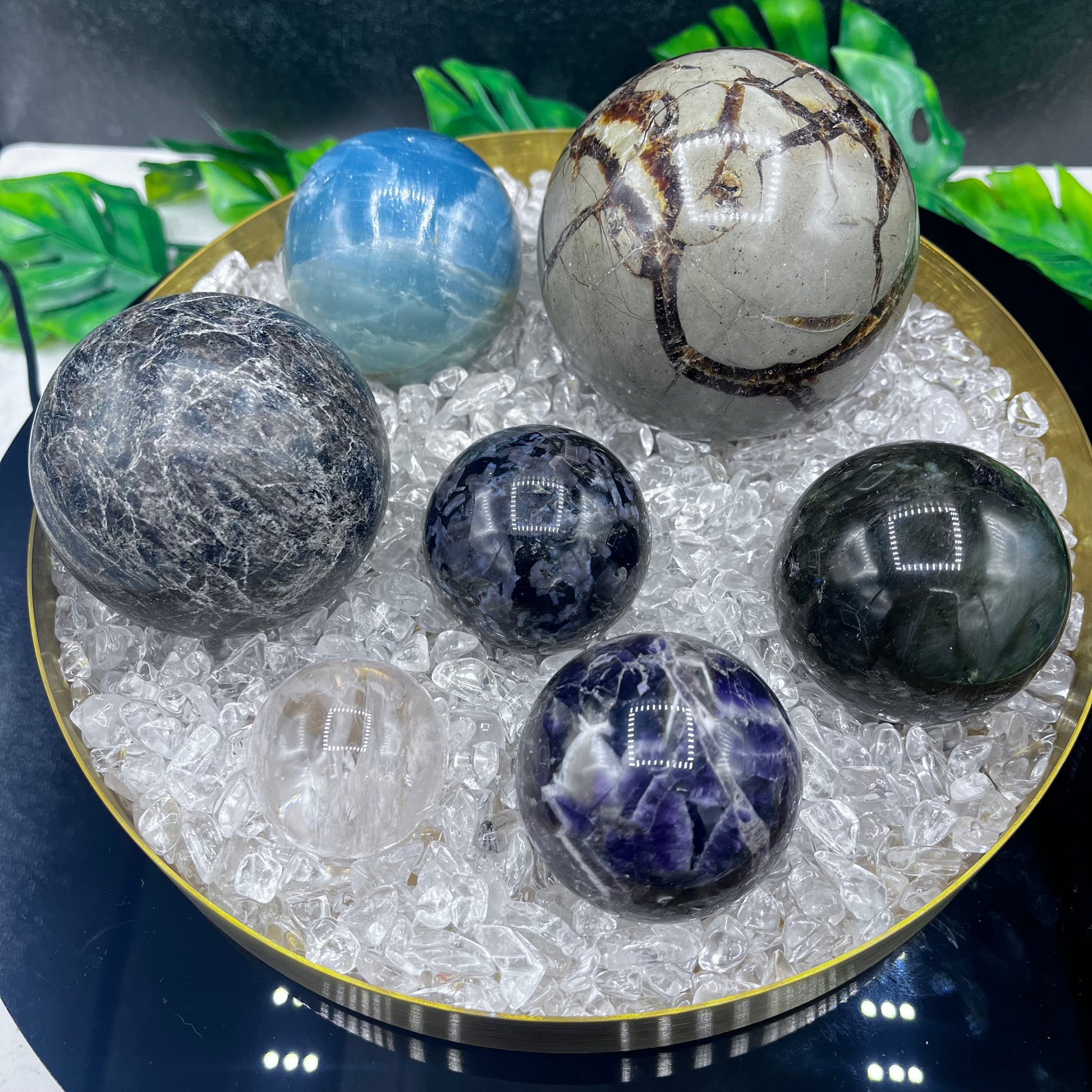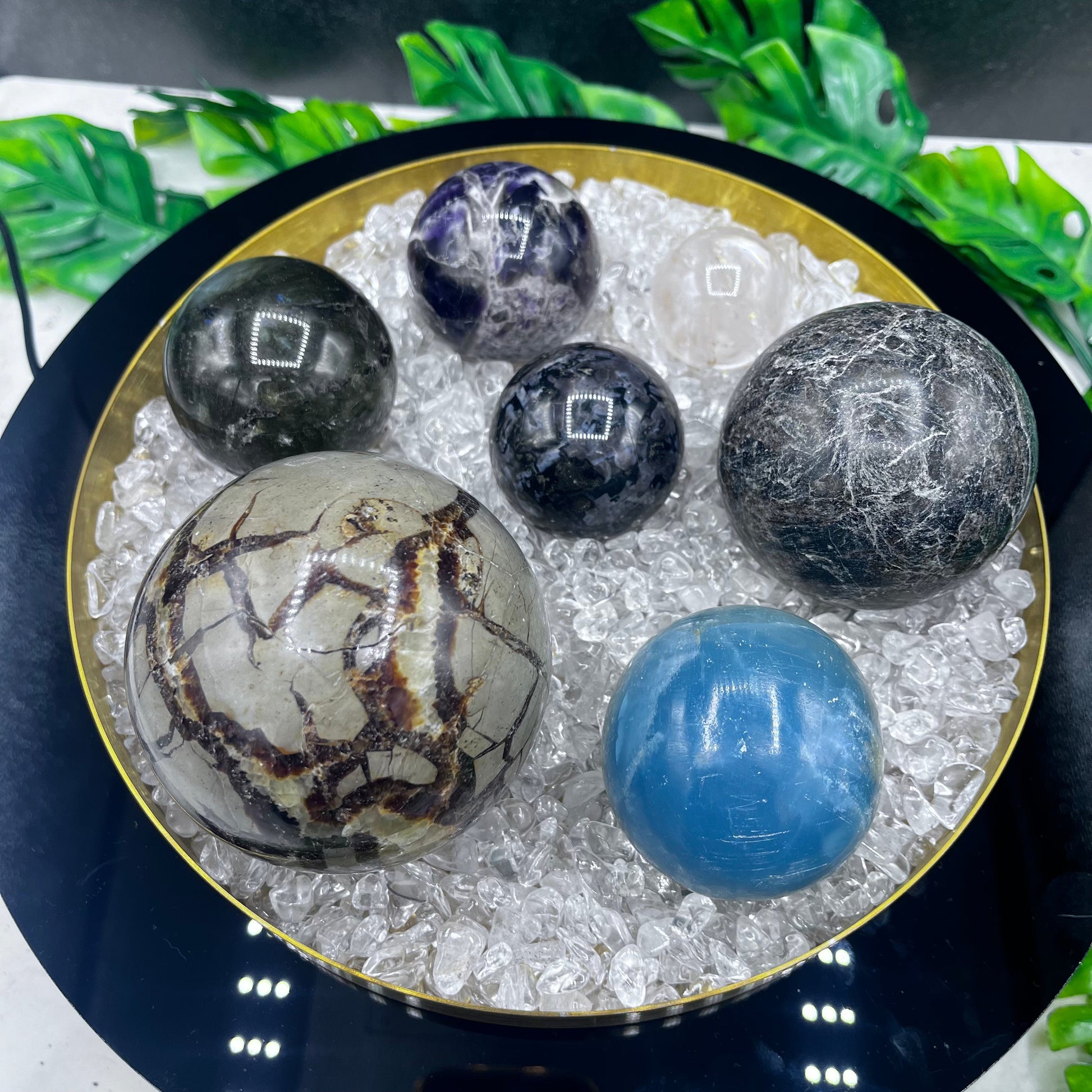 Grab ahold of our 7 Sphere Bundle and get ready to have some fun! Enjoy the luxury of having seven stunning spheres for your beautiful altar or mantle for display!