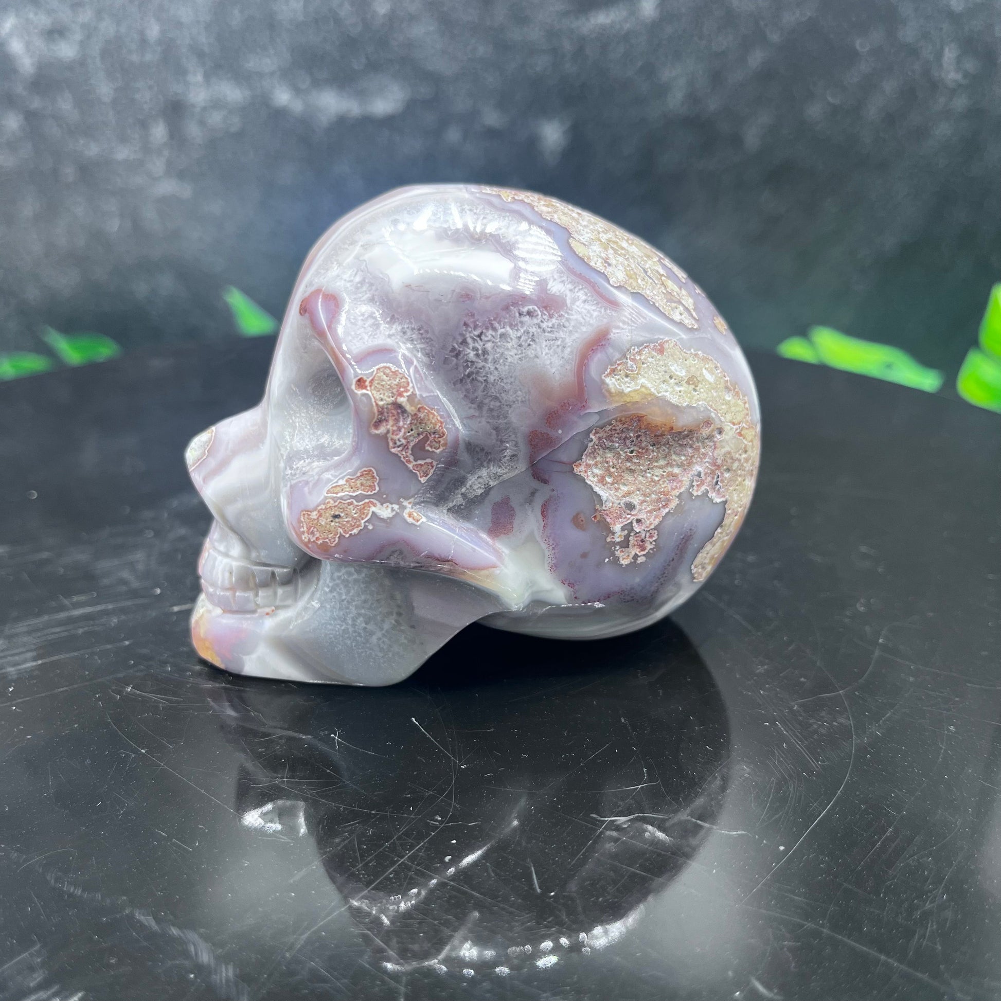 This stunning Agate Skull is crafted with expertise from gorgeous agate stone. As a unique and special piece, it is an ideal choice for a collector of luxury items. Its intricate and eye-catching details make it a beautiful addition to any home.