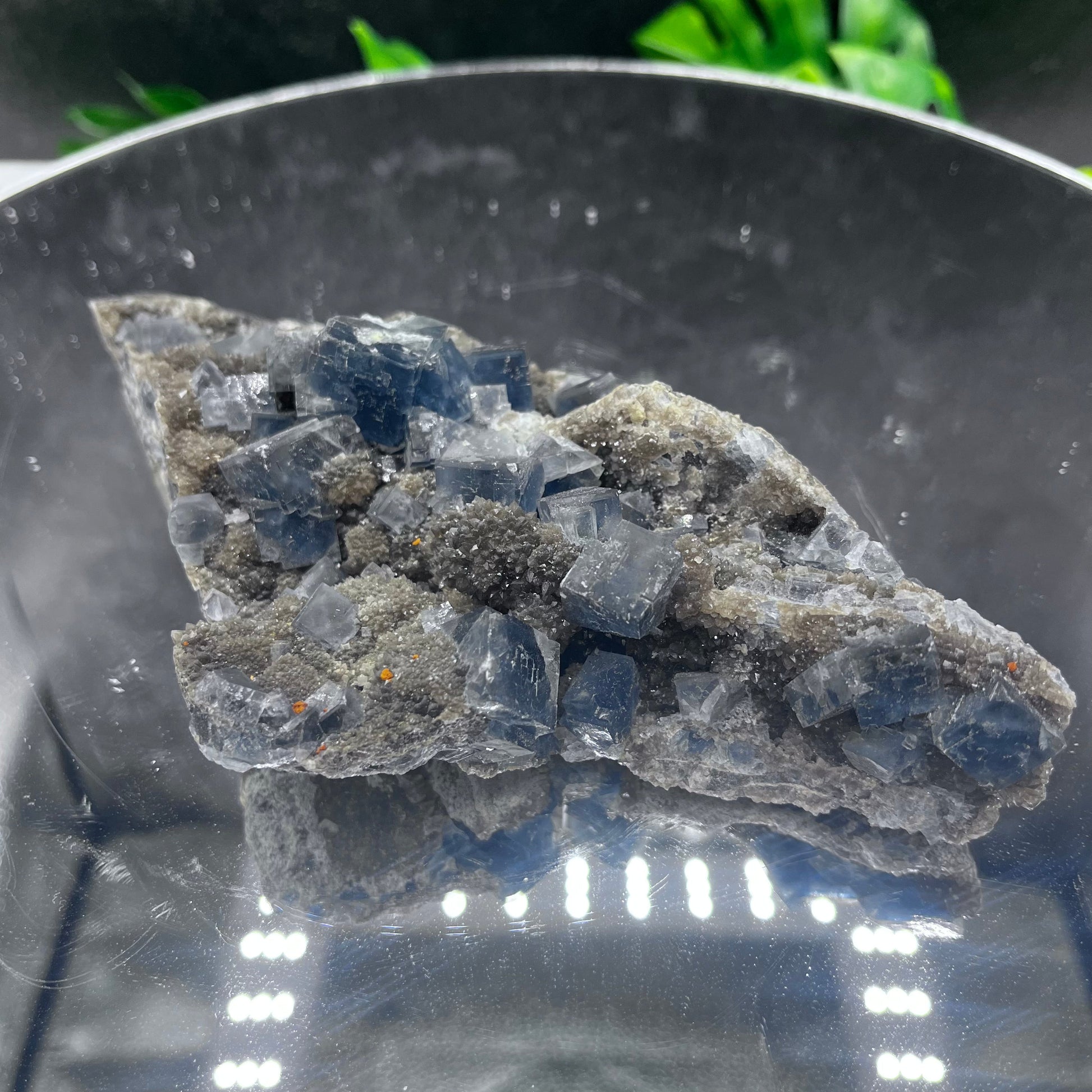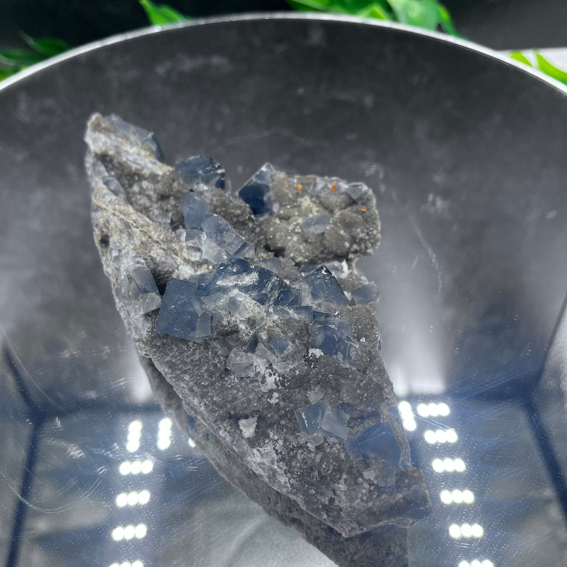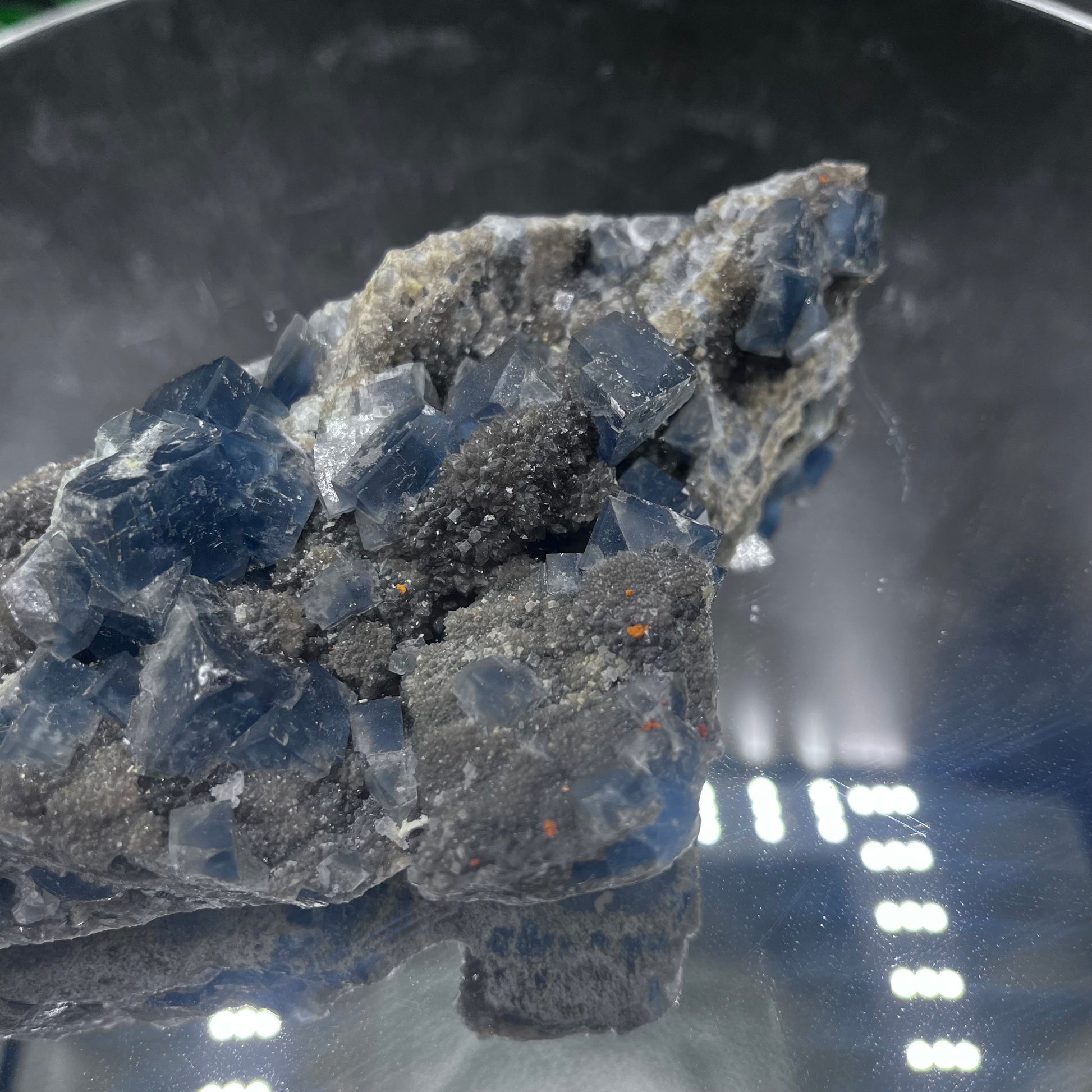 Yaogangxian Cubic Blue Fluorite on Black Druzy
