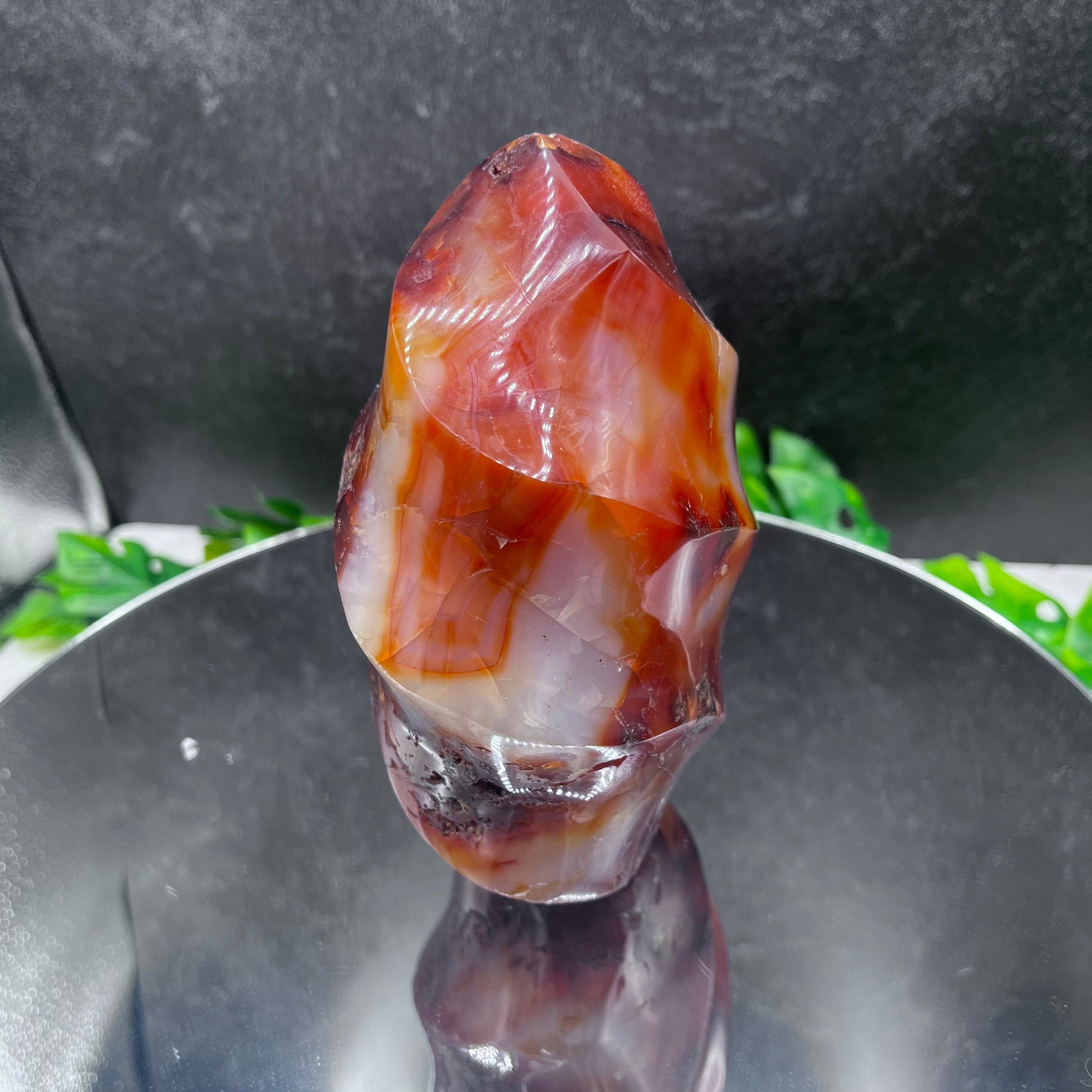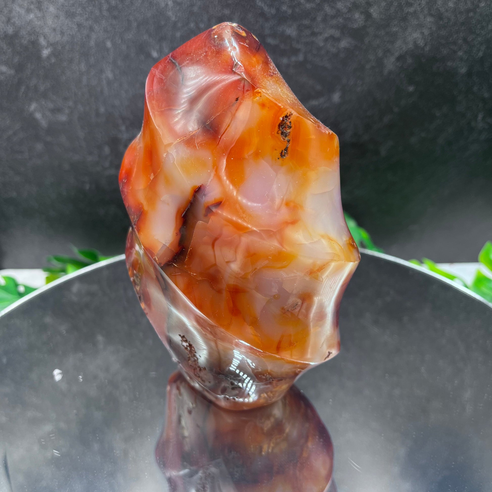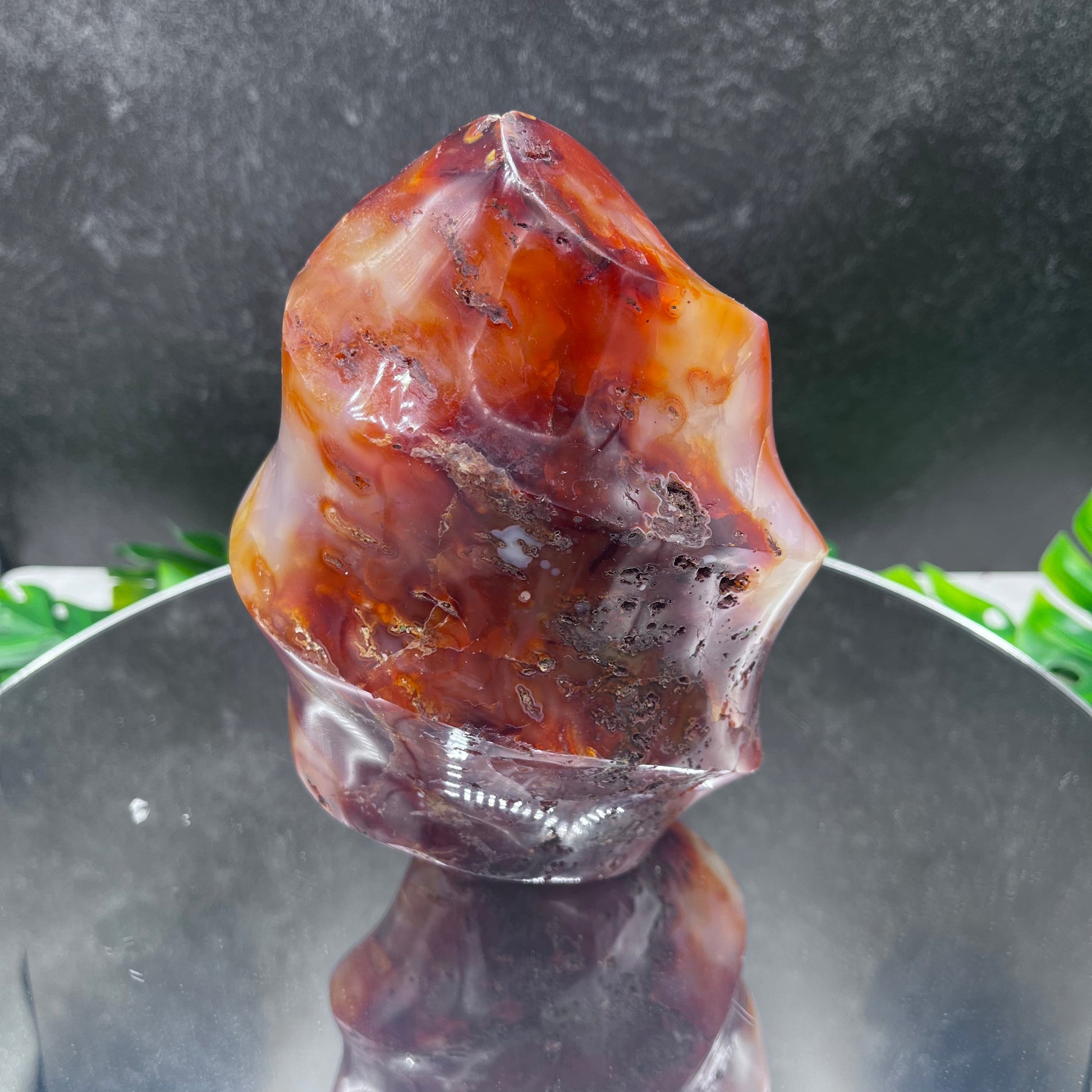 The Carnelian Flame is a timeless statement piece, created with a luxurious and intricate Carnelian Agate flame that emulates a regal, fiery aura. With its beautiful design and seamless detailing, this elegant piece will be sure to elevate any space.