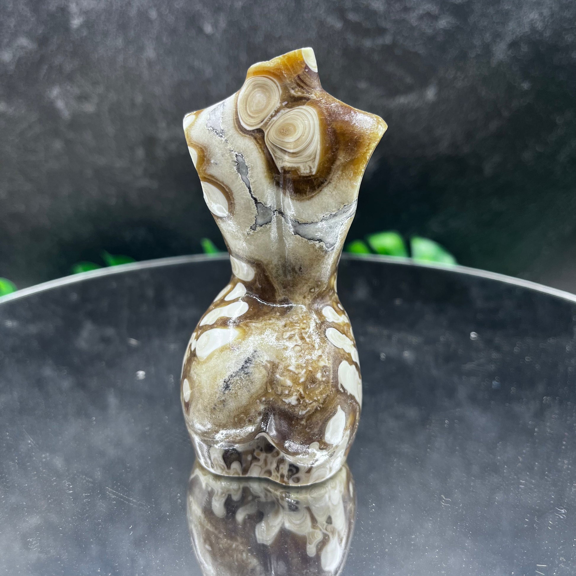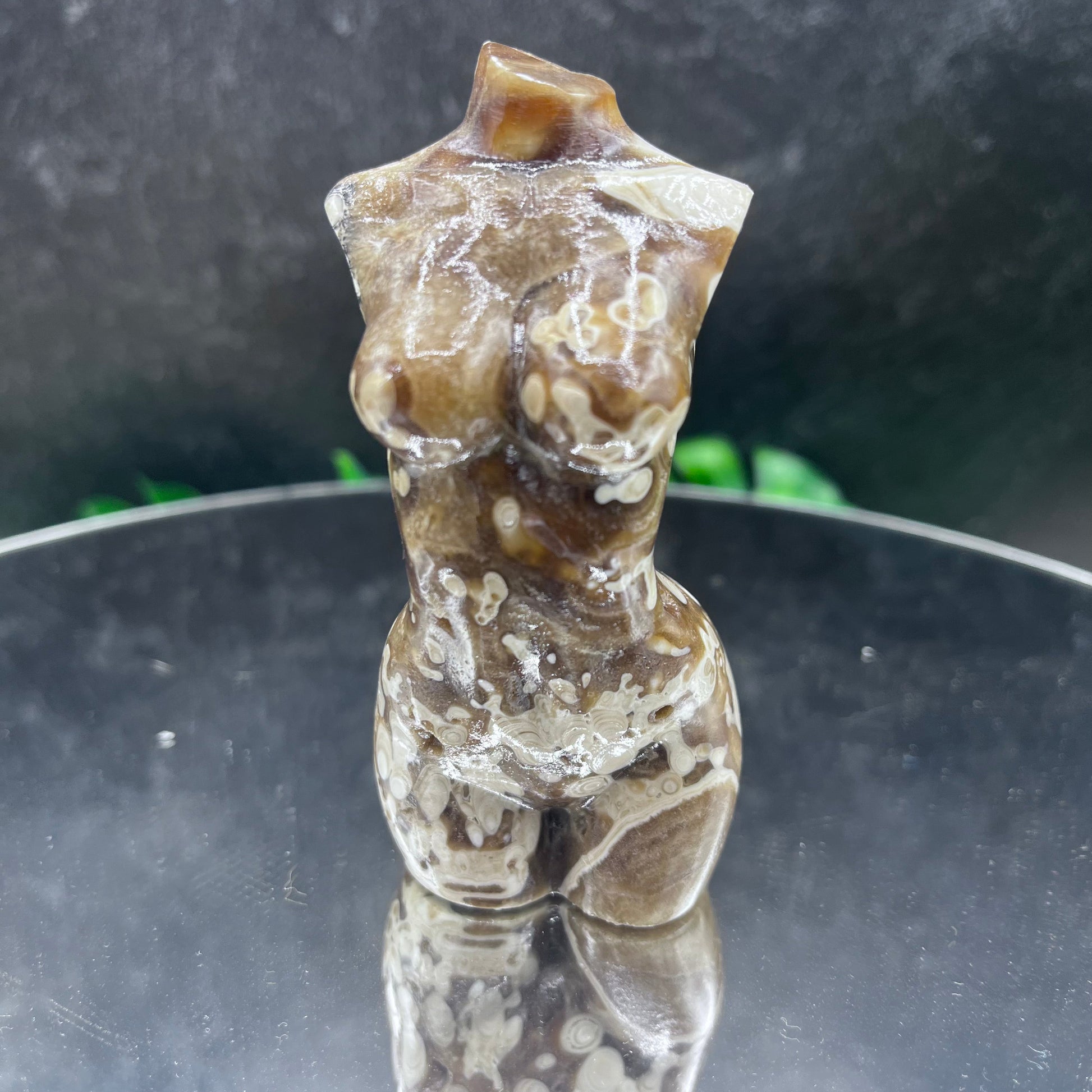 Behold the Chocolate Calcite Goddess, a luxury carving crafted from the highest-quality chocolate calcite. With its intricate design and elegant marble finish, it adds a touch of sophistication to any home. Perfect for a gift or home décor, this goddess is sure to dazzle.