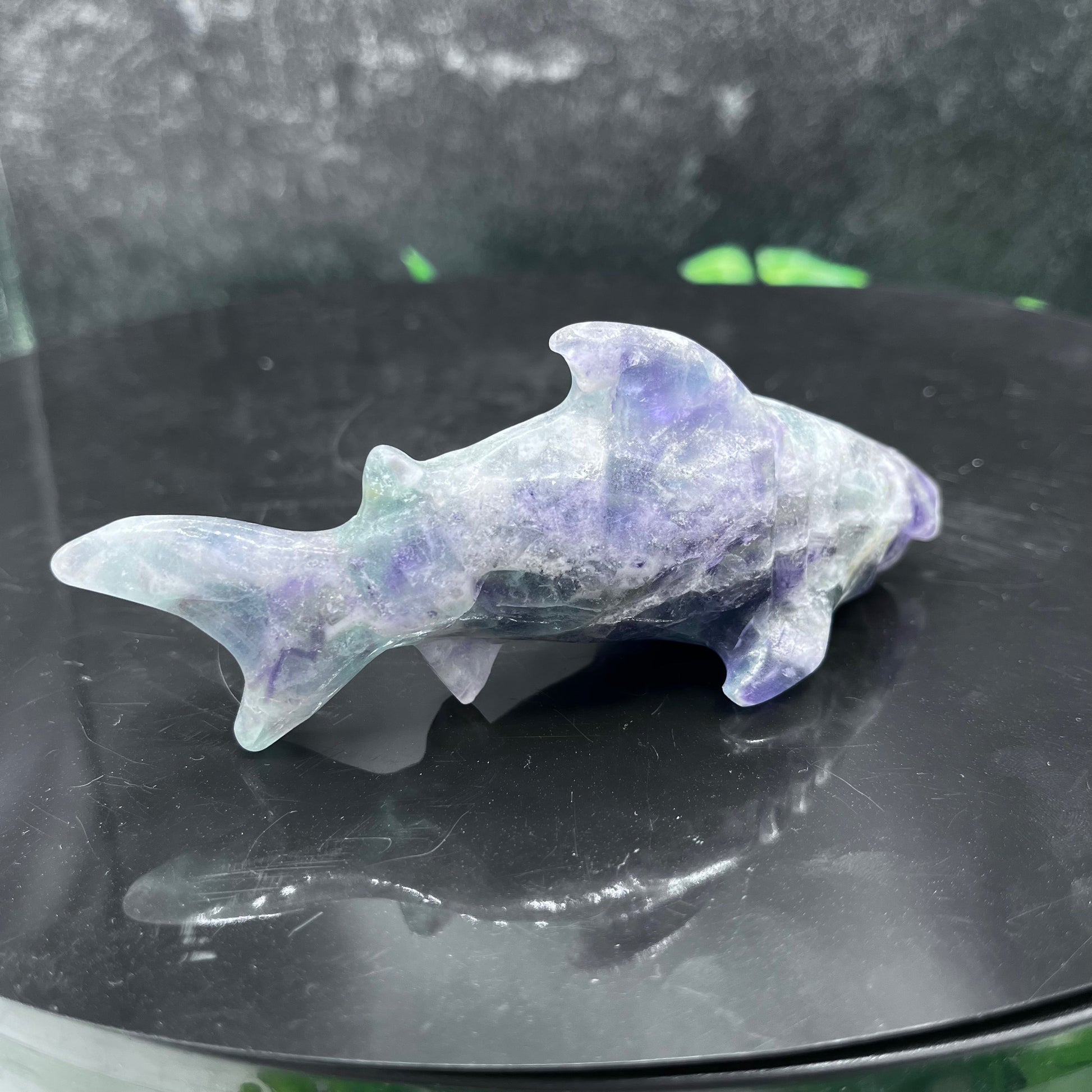 Fluorite Shark is a stunning natural crystal, perfect for collectors, home decor enthusiasts, and those who appreciate Earth's natural wonders. Each piece is hand-selected and sourced for its quality and beauty, making it a unique addition to any space or collection.