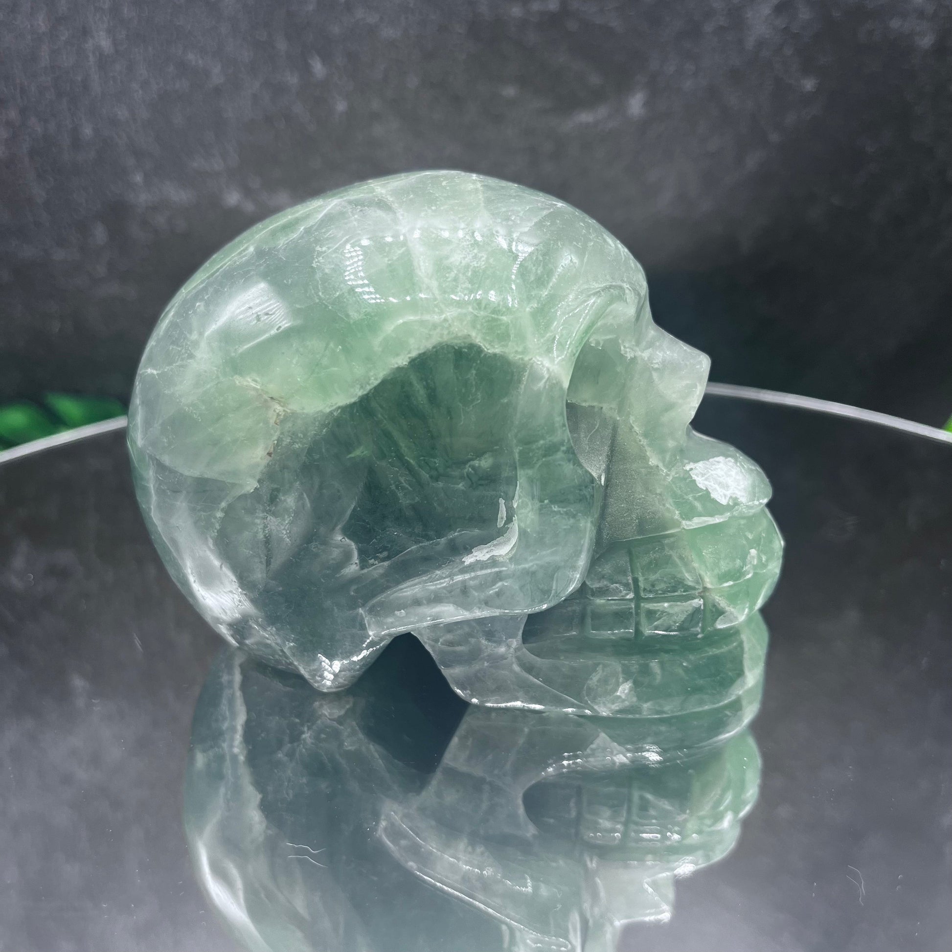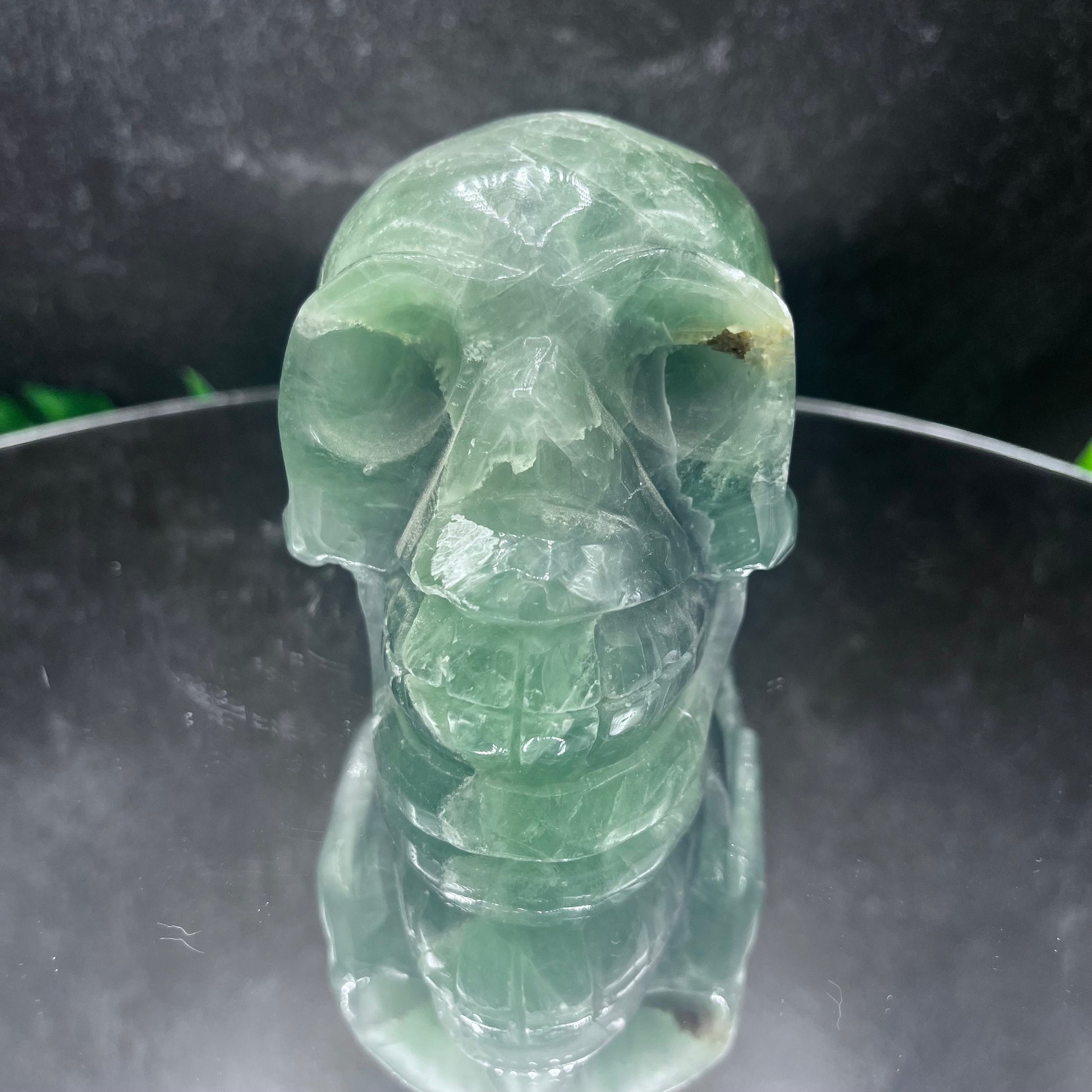 Green Fluorite Skull is a stunning natural crystal, perfect for collectors, home decor enthusiasts, and those who appreciate Earth's natural wonders.