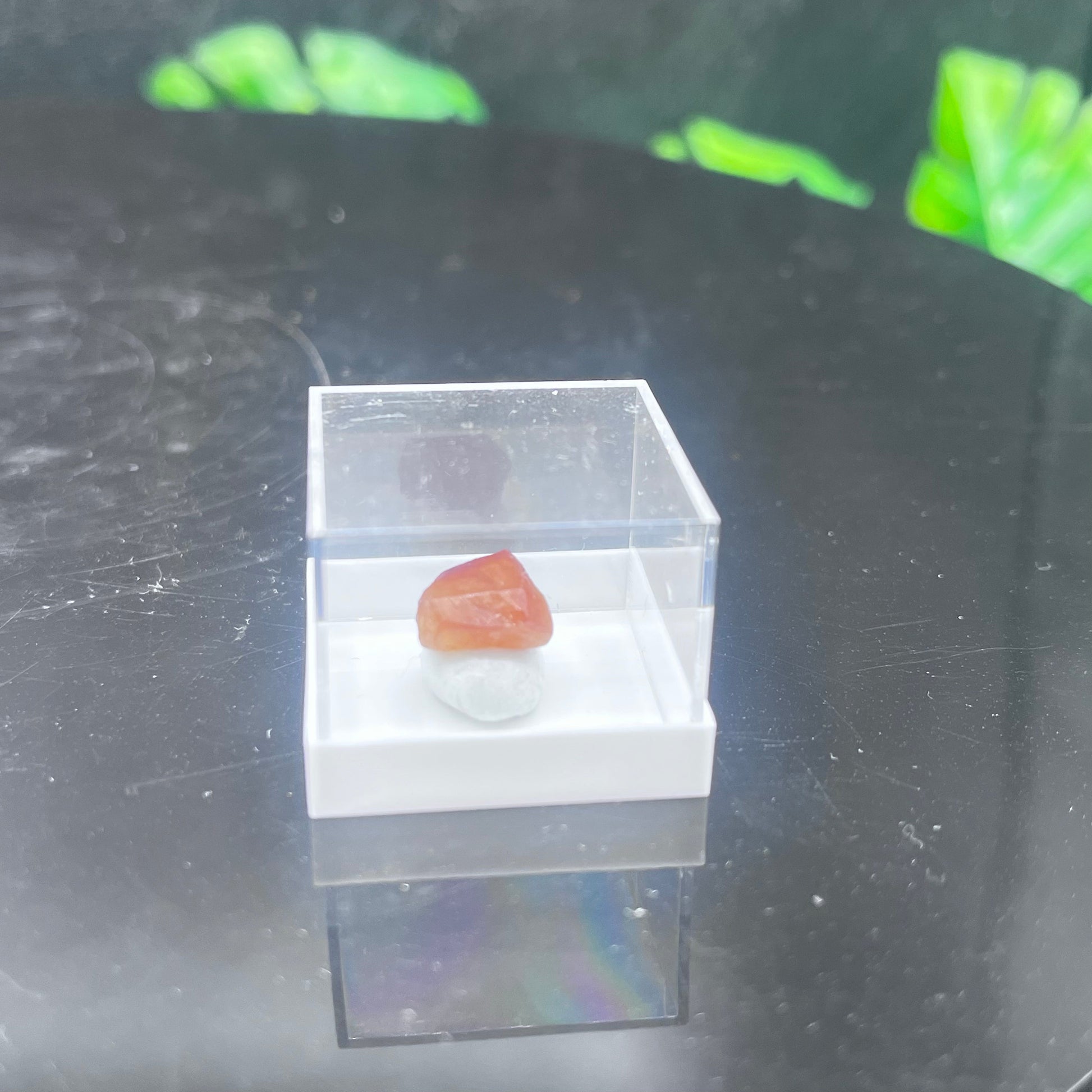 This stunning Hessonite Garnet Specimen radiates with its unique, deep orange hue. Each piece displays unique inclusions and its subtle shimmer hypnotizes the eye. Own a one-of-a-kind piece of natural beauty, perfect for any collector's shelf.