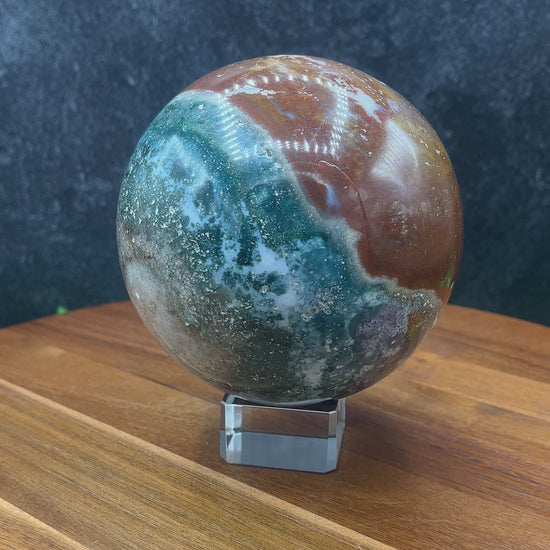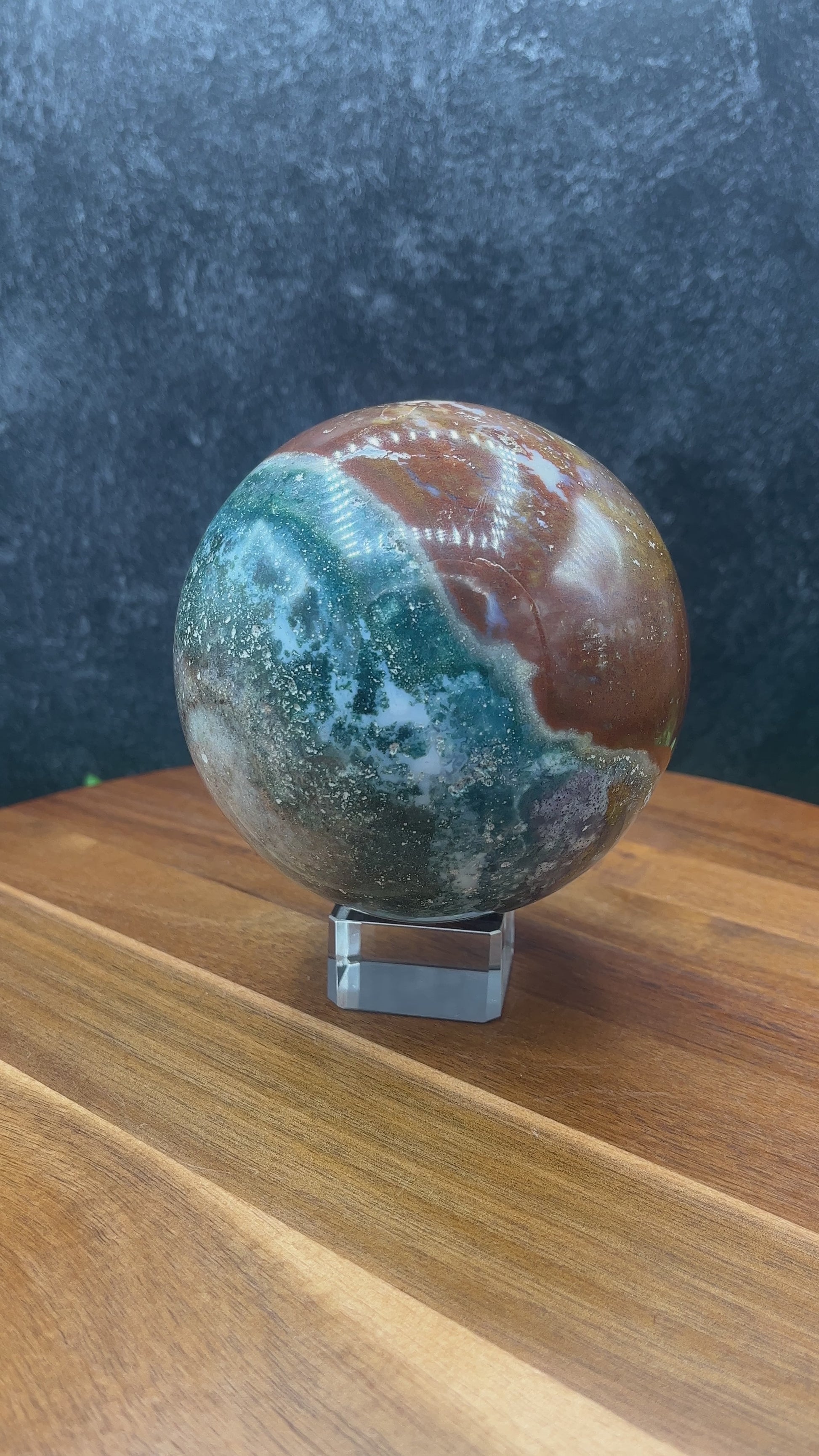 This Ocean Jasper Sphere is a stunningly unique piece of nature, offering a luxurious aesthetic with its delightful color palette. Made from natural materials, it adds an air of sophistication and style to any interior design. Admire its beauty and see the world in a whole different light.