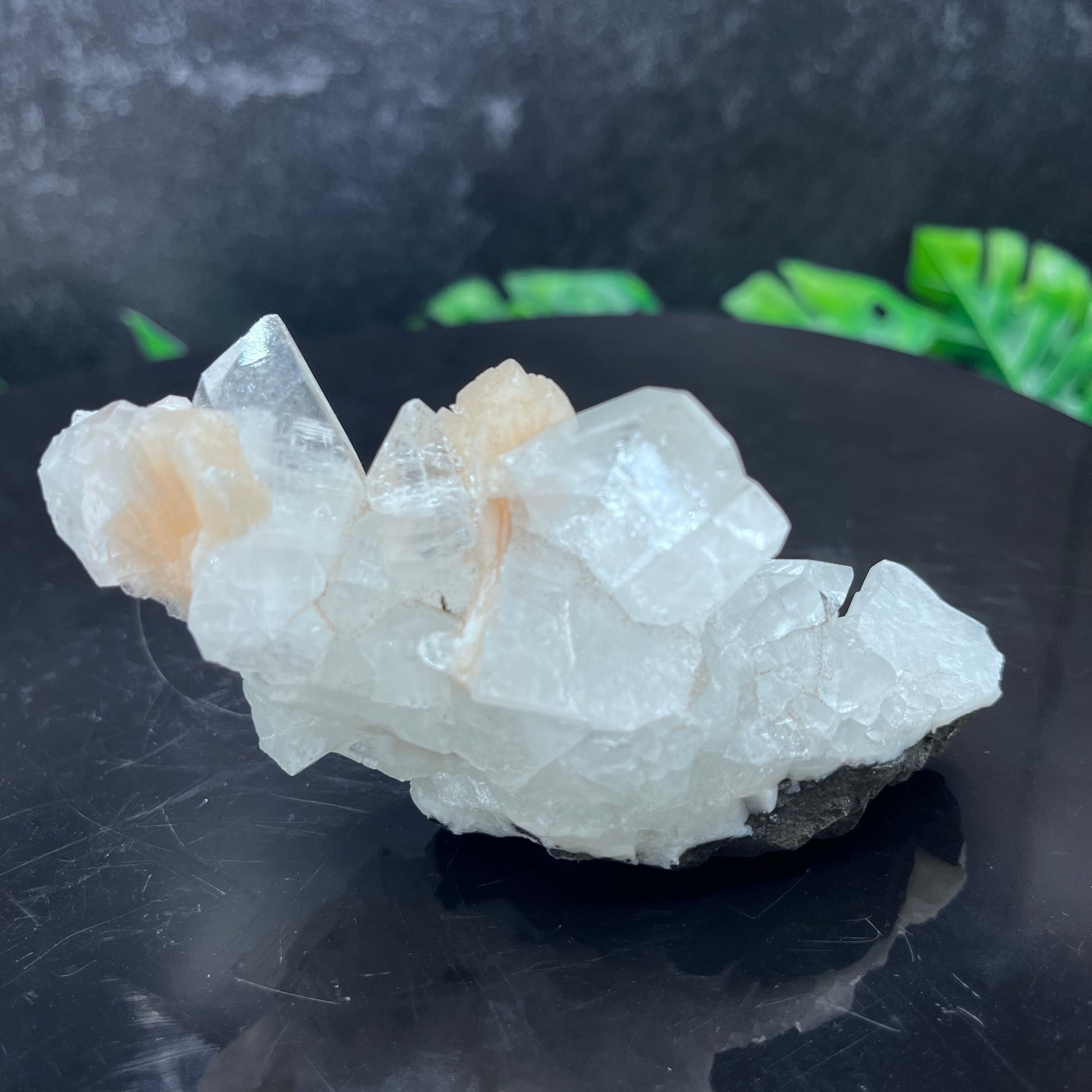 This exquisite piece of jewelry features an exquisite blend of Peach Stilbite set atop a pedestal of Natural Diamond Apophyllite. The luxurious combination of materials creates a statement piece with a unique texture and structure that will add a touch of sophistication and exclusivity to your look.