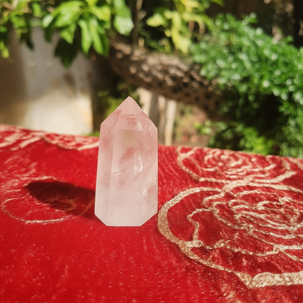 This delicate scarf makes a beautiful foundation for your altar or a sacred adornment for your rituals. It’s crafted from red lace silk and detailed with golden rose accents. Place it on your altar as a soft, intentional space for your tools, allowing it to infuse everything with rose energy. You can also wear it during ritual work as a high-vibration accessory for new beginnings and protection.