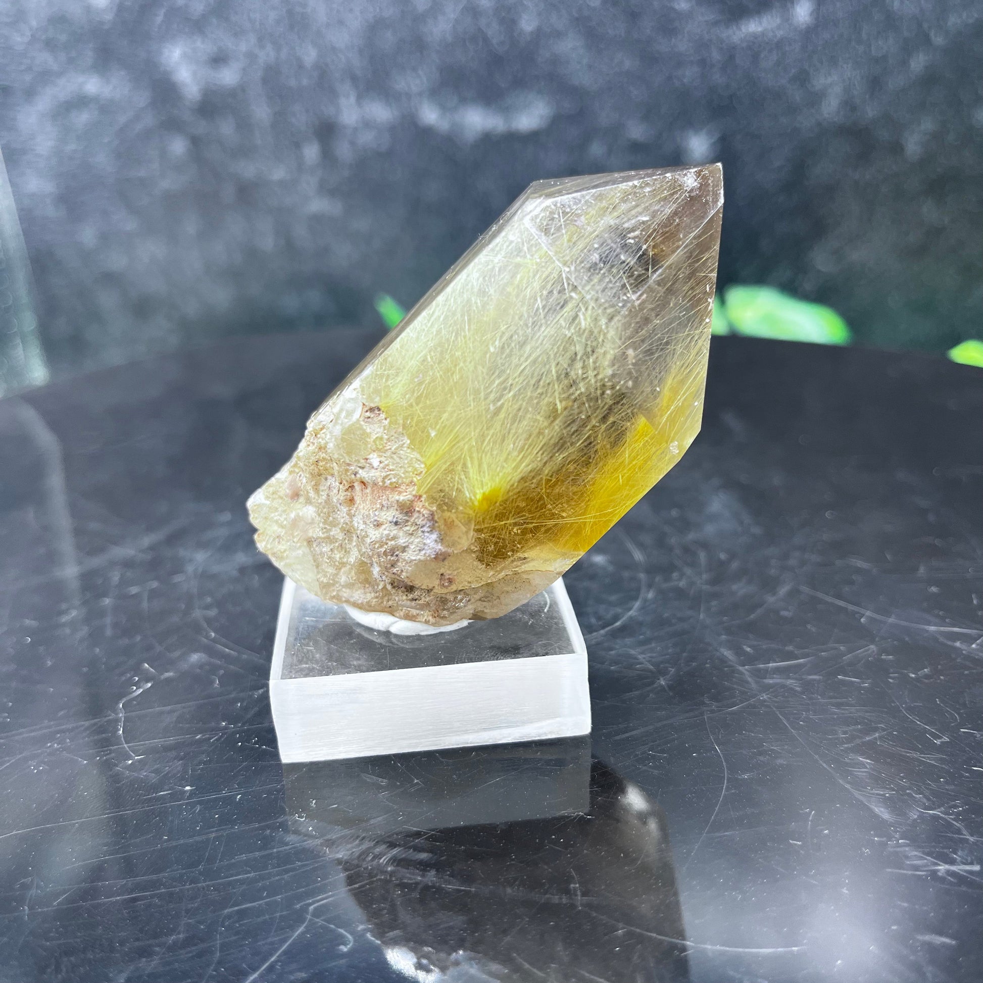 This luxurious Rutile Point is the perfect addition to any collector's rare and precious stone inventory. Handcrafted to perfection, this one-of-a-kind specimen exudes a beautiful luster that will captivate and sparkle from any angle. A timeless and elegant statement piece.
