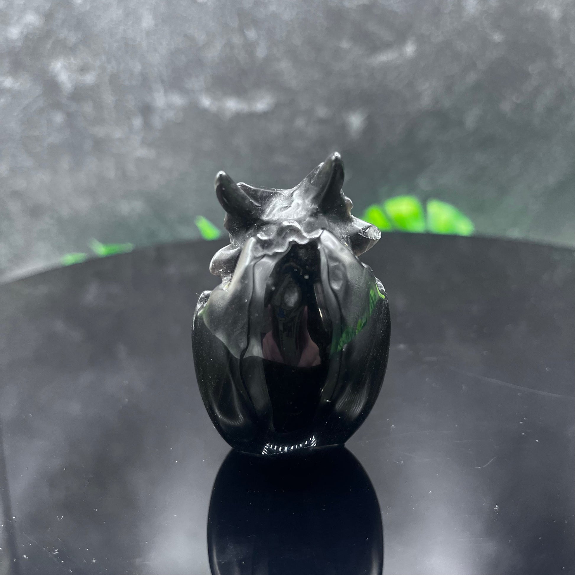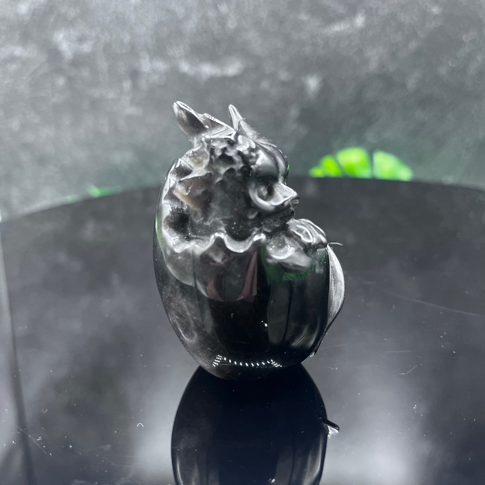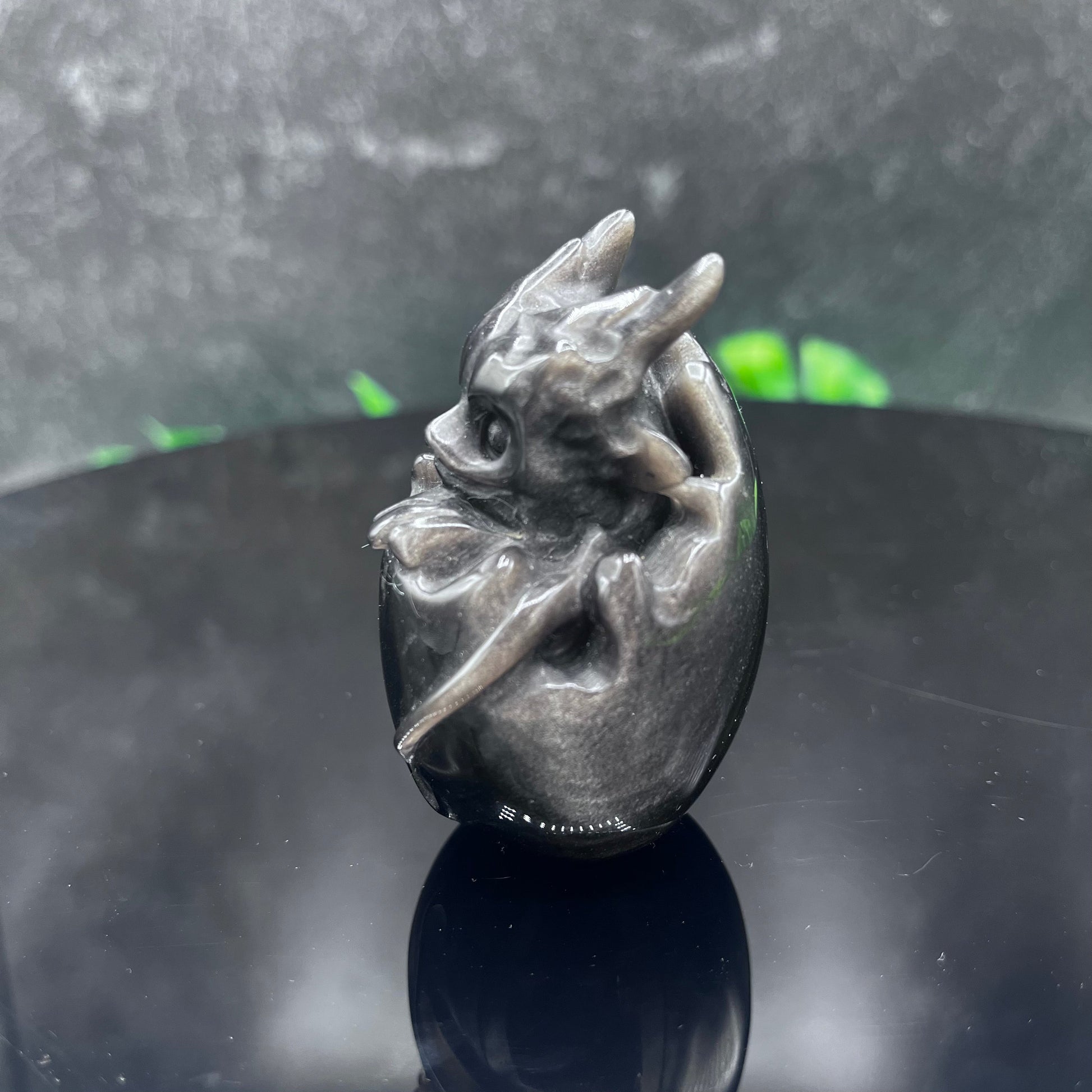 Give your appetizers a luxurious touch with this exquisite Silver Sheen Obsidian "Deviled" Egg. Crafted from natural stone, this unique egg is sure to be the center of attention on any dinner table and a conversation starter.