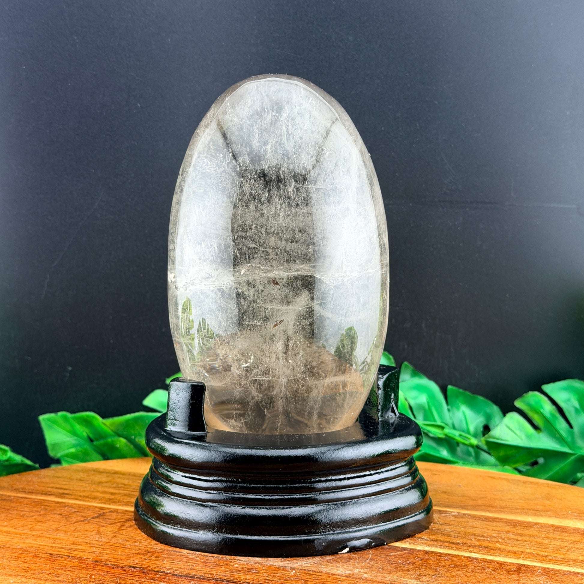 Smoky Quartz Droplet with Red Hematite in Stand
