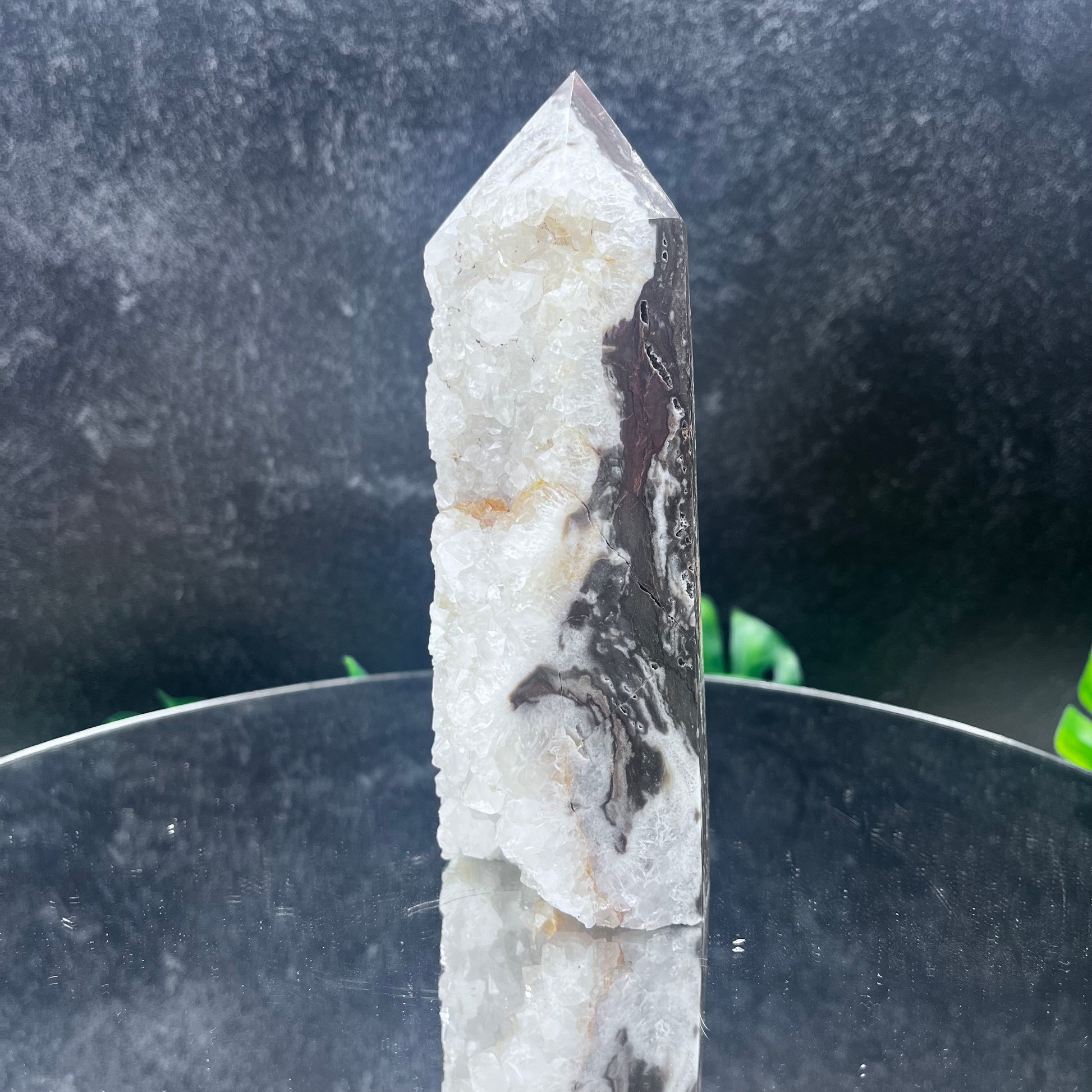 This exquisite Sphalerite Tower is a sumptuous addition to any décor. The tower is composed of natural druzy in Sphalerite, with a unique luster and opalescent shimmer, that will bring an alluring radiance to any room. The Sphalerite Tower is truly an ideal choice for those who appreciate luxurious beauty.