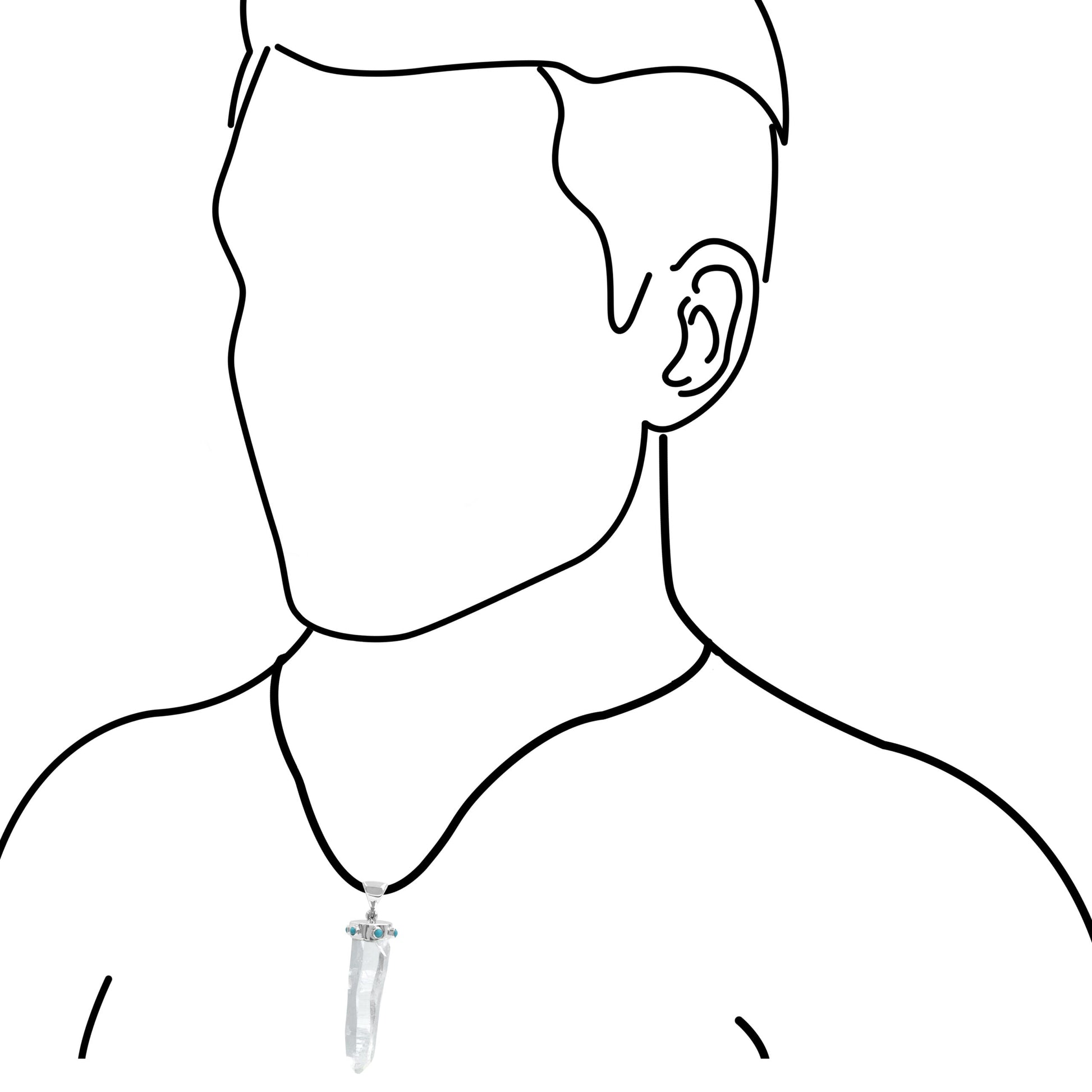 - A luminous Laser Quartz Crystal pendant is delicately accented with vivid Campitos Turquoise, creating a stunning mix of purity and color. Crafted in Fine Sterling Silver and measuring 2.65 inches in length, this piece radiates elegance through its natural contrast.