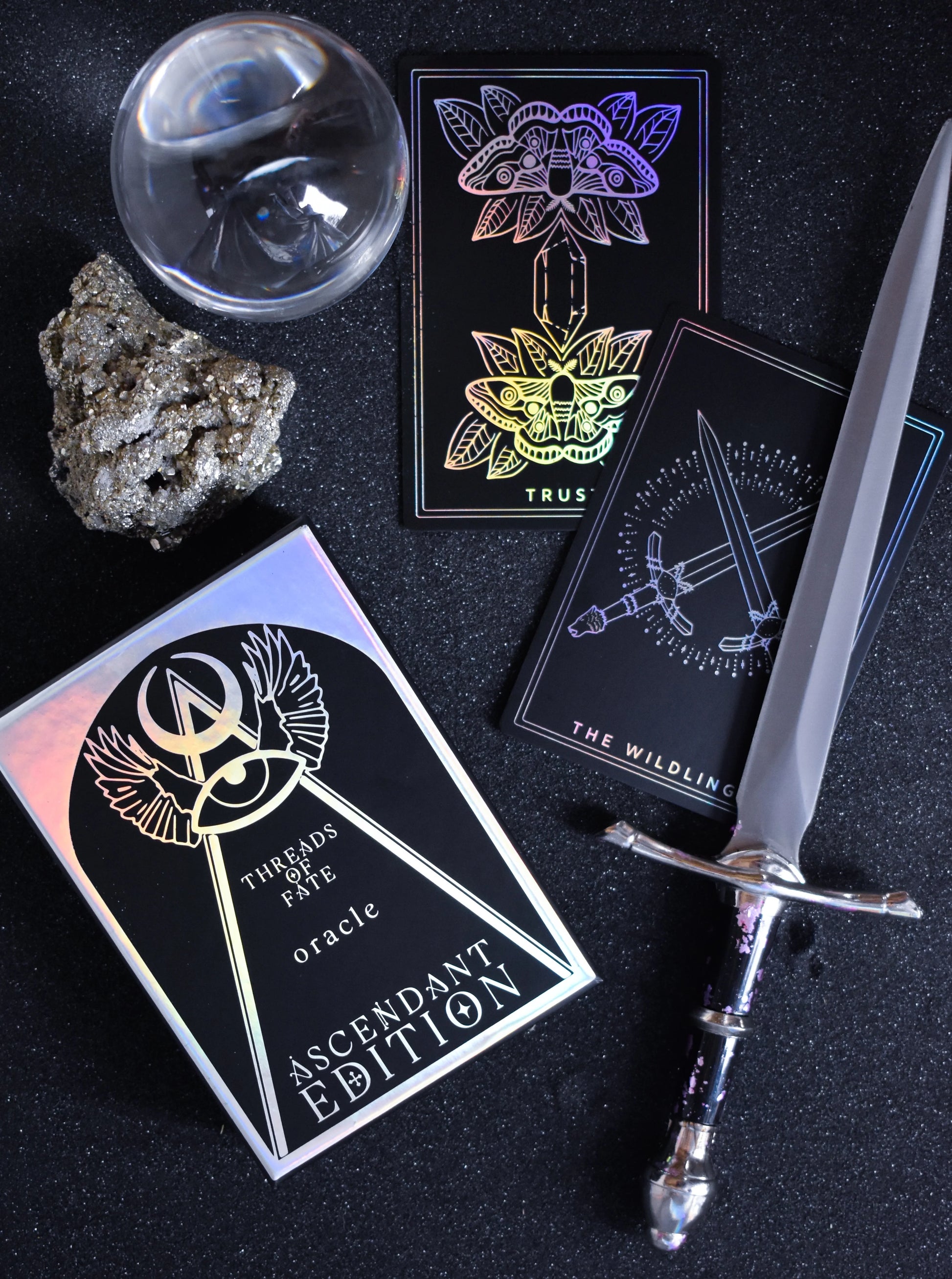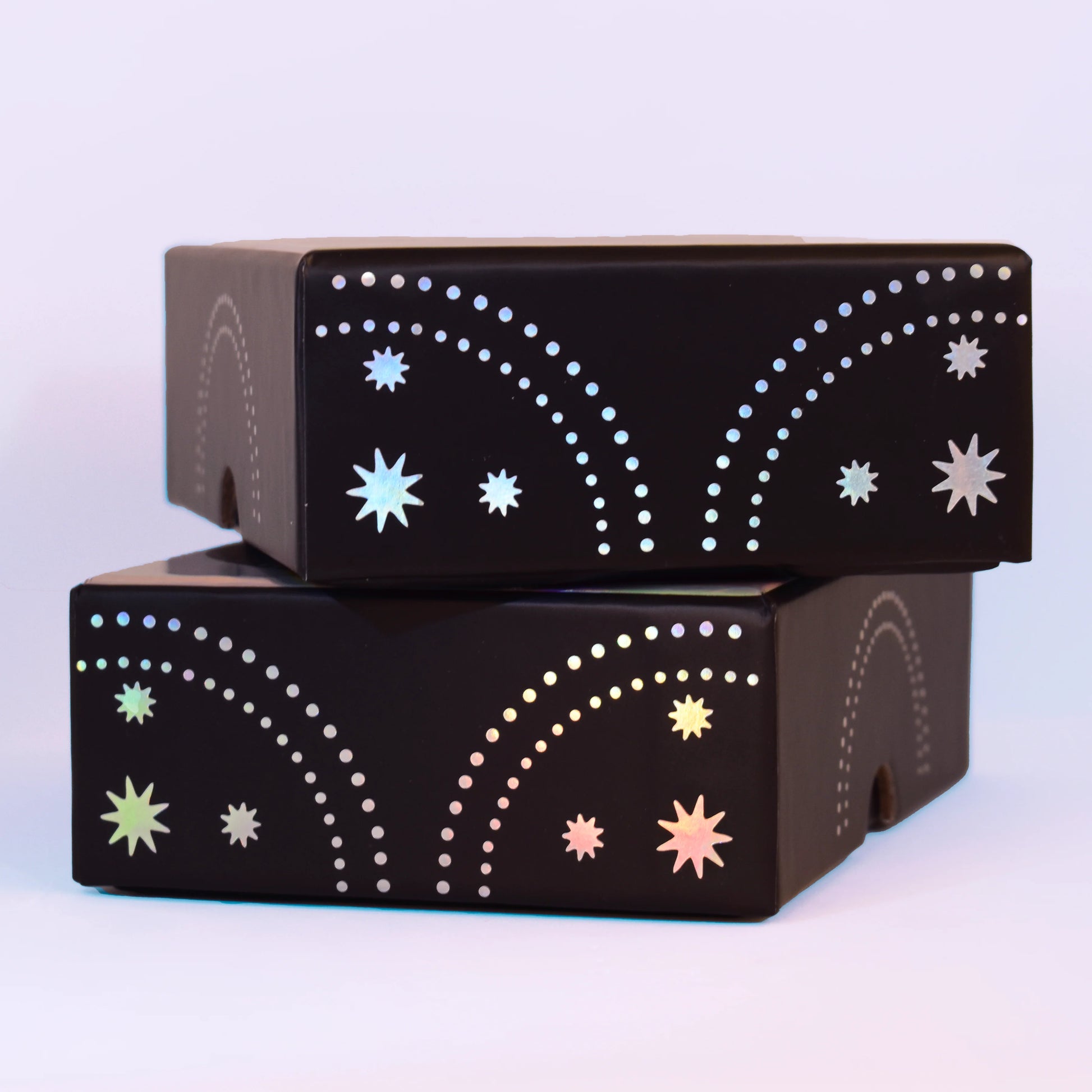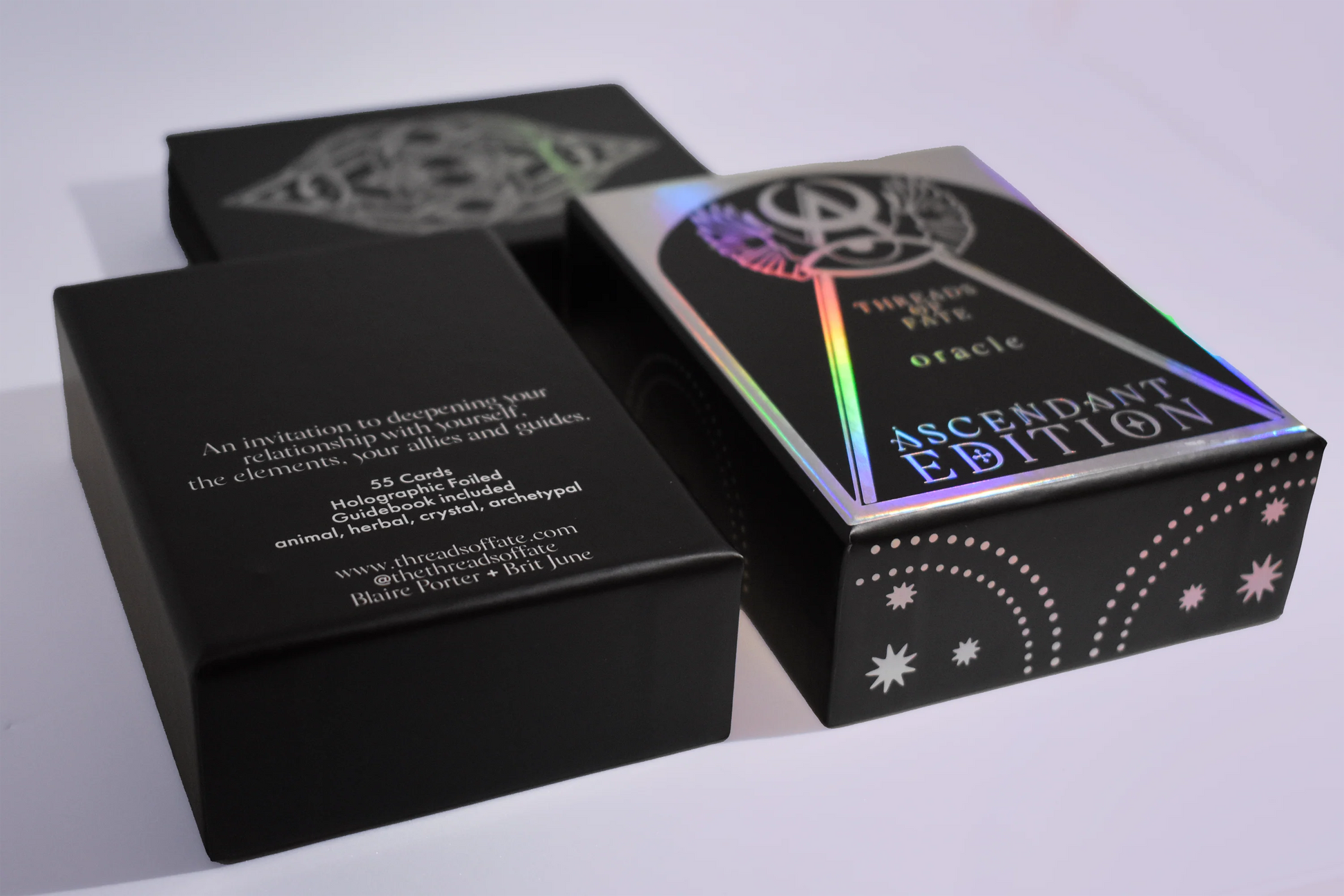 Holographic foil artwork on anti-scratch matte black 400 gsm cardstock